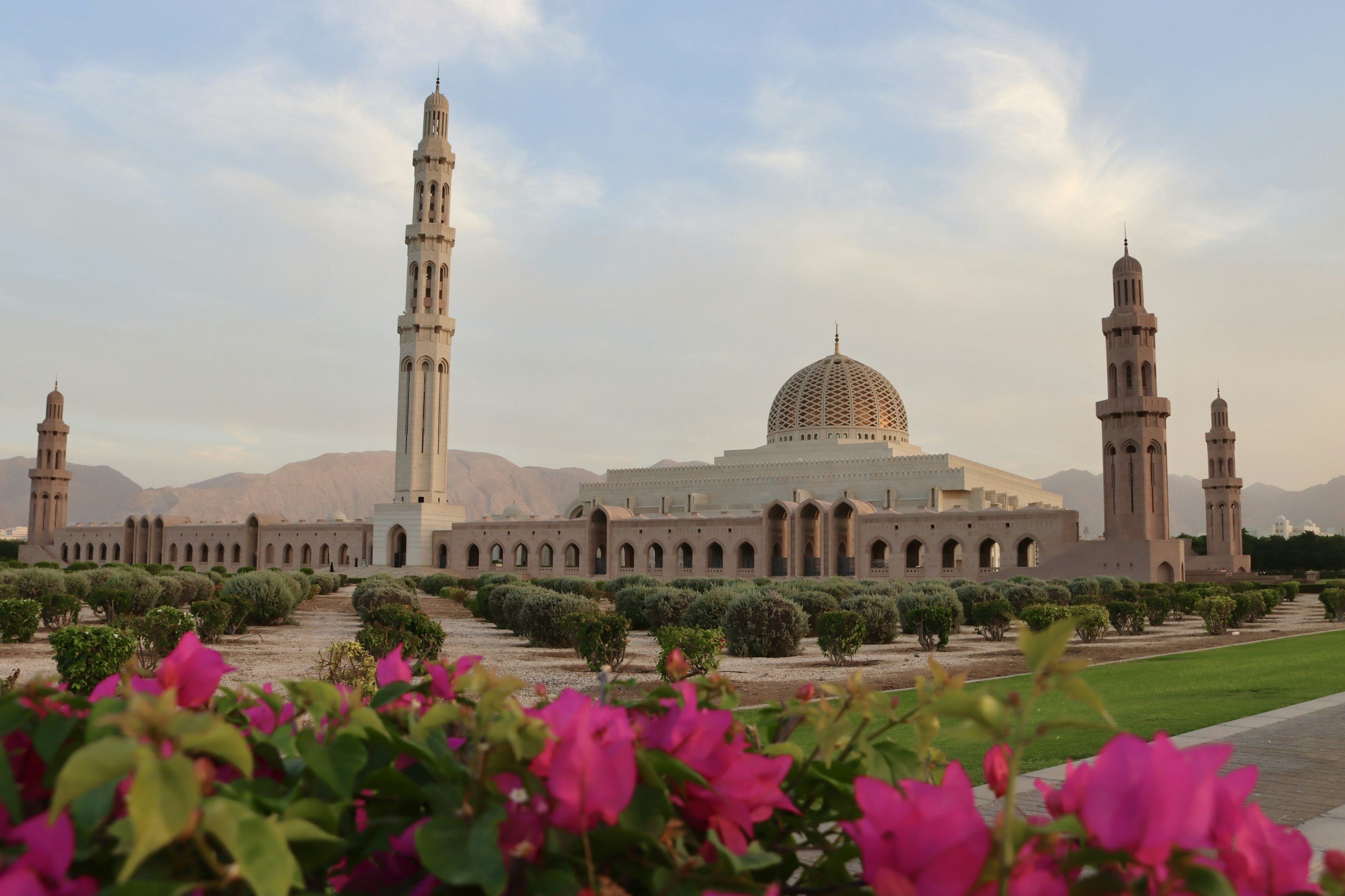 Muscat is stretched very far a long the coast, and nothing is really close together at all so as mentioned you will probably need a car. All the way out in the east is Old Muscat, which is where the original historic city of Muscat was built. Inside is also Al Alam Palace, the ceremonial palace of the Sultan. It sits at the center, flanked by two Portuguese-era forts. You can’t enter the palace, but the area is quiet, scenic, and good for a short walk. The Mutrah Corniche is the massive long waterfront promenade which curves along the waterfront, with fishing boats, the harbor, and mountains rising behind the road. It’s one of the best views you can get of Muscat. Check out Mutrah Souq for a classic market experience as well. Perhaps one of the main highlights in Muscat is Sultan Qaboos Grand Mosque, found in the cities central area, and it is the most important religious building in Oman too, so definitely worth a visit.